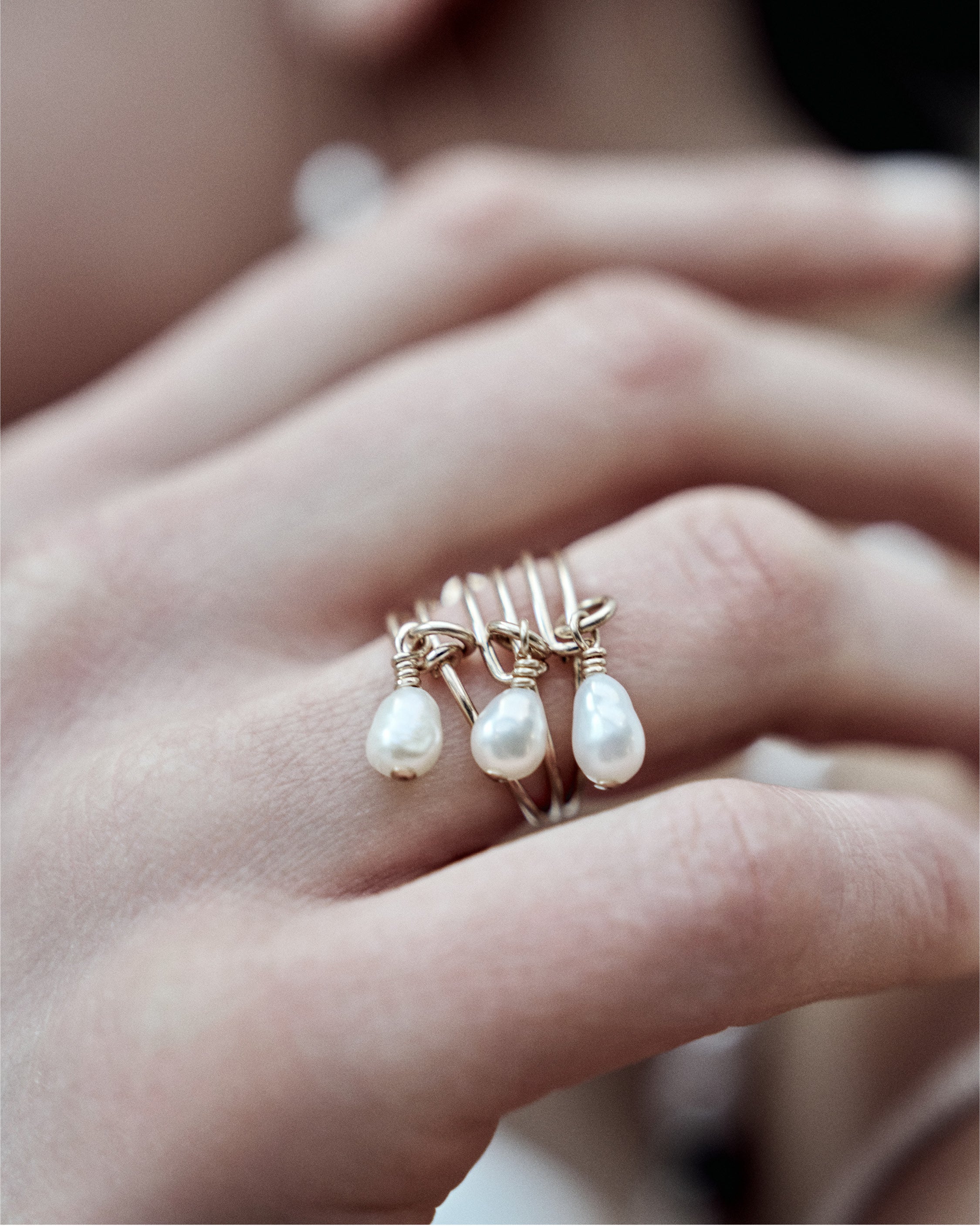 The Aeris collection captures a moment of perfect balance, like a droplet held in motion or a pearl floating with the body. Each knot between pearls marks a pause, revealing the jewelry's fluidity and lightness - a subtle balance between restraint and freedom.
