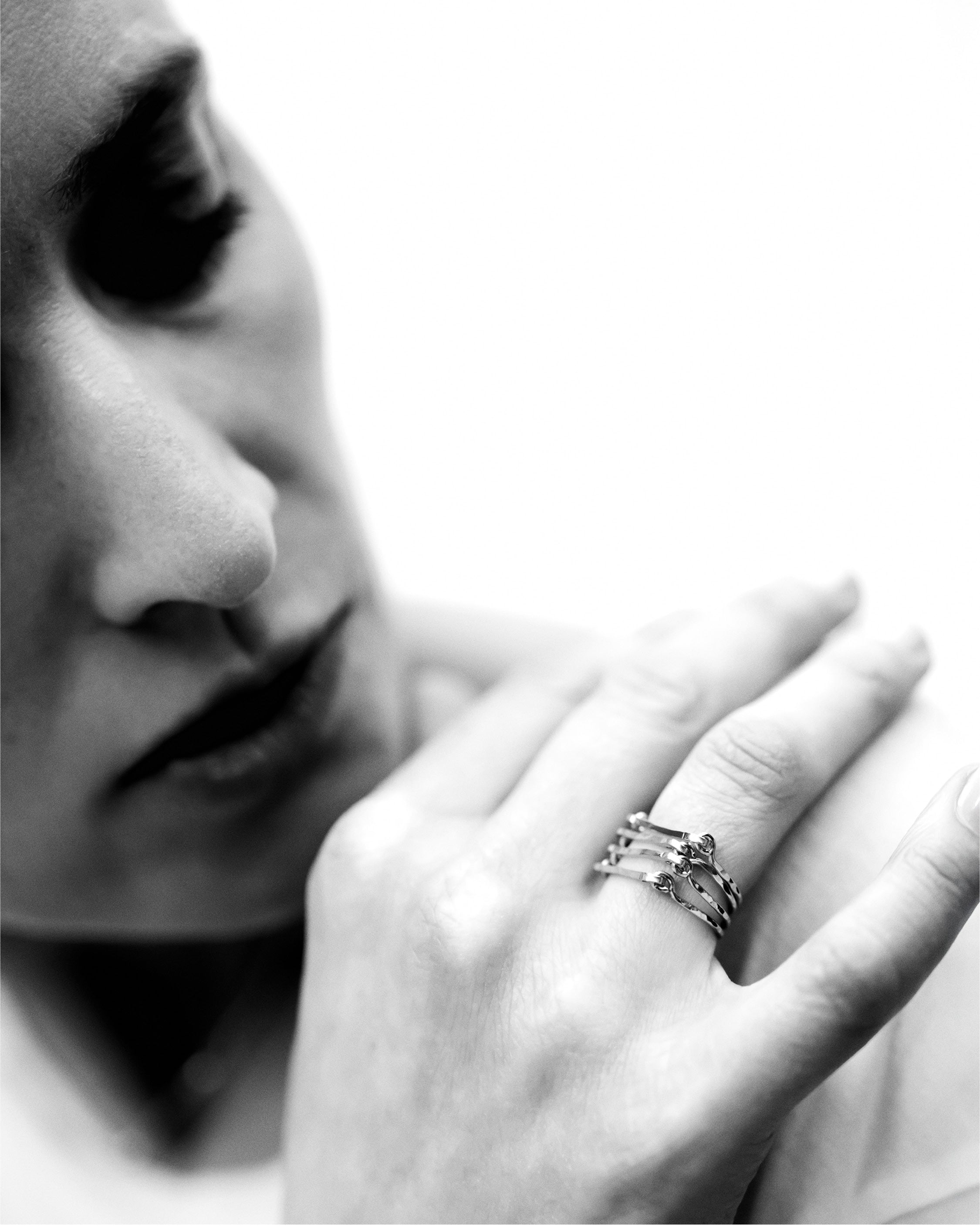 The Liens collection celebrates the strength of connections. Crafted from gold filled wire, each piece forms balance through fluid, organic movement. Worn alone, they reveal grace ; together, they intertwine and and transform, inviting the creation of a personal, ever-evolving balance.