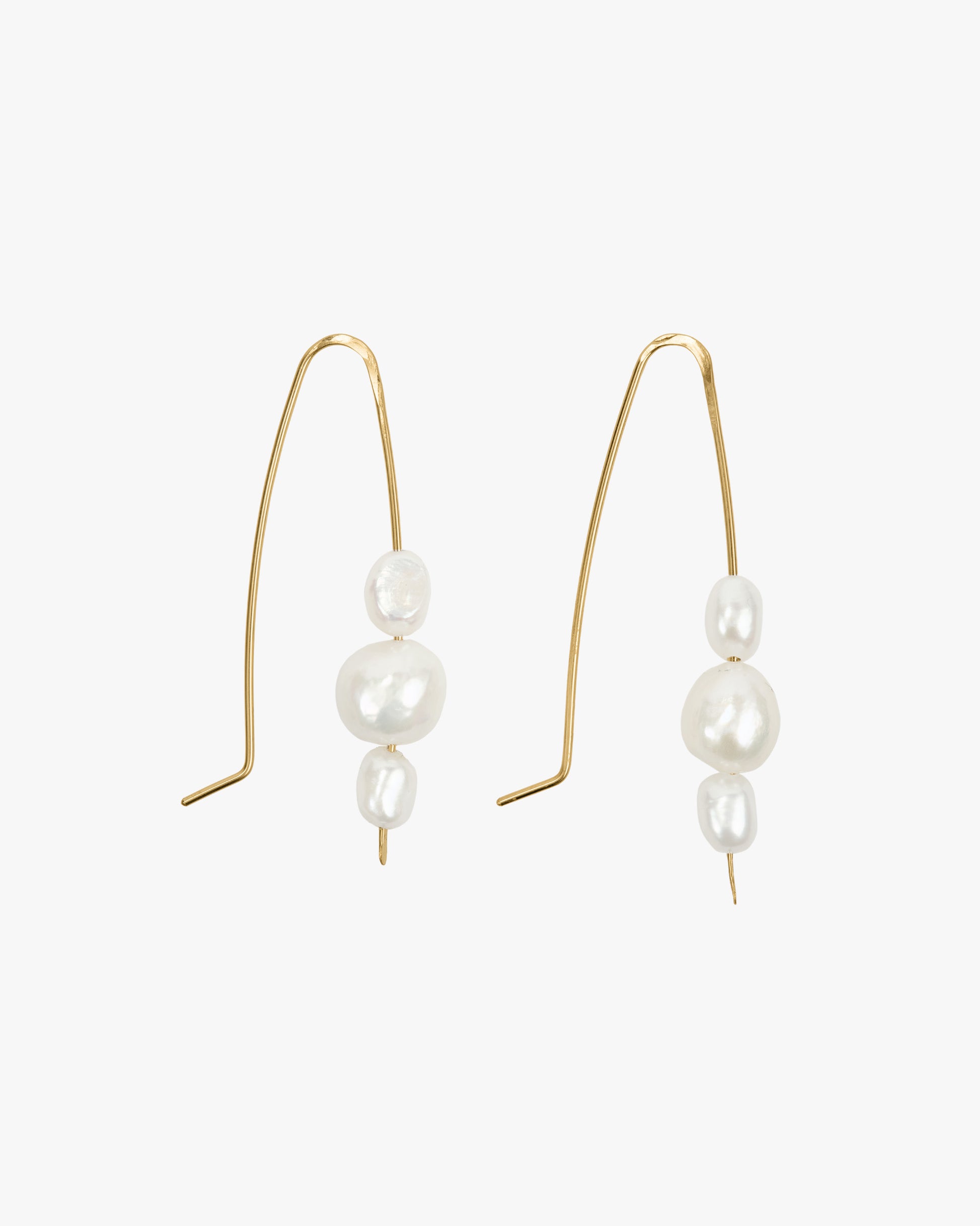 Andrea earrings are entirely handmade in our workshop, from gold filled wire, punctuated with freshwater pearls whose singularity makes each piece of jewelry a unique creation.