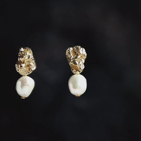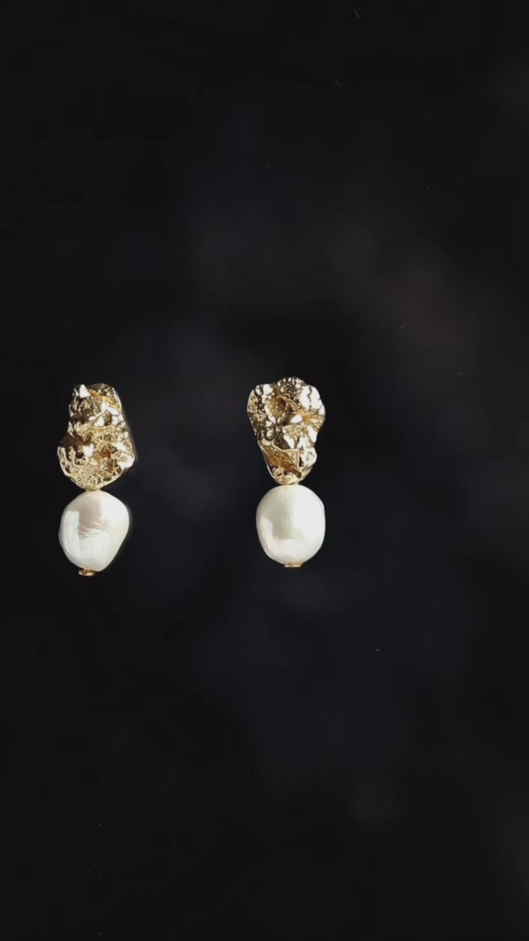 Identical in their organic outline, each is worn facing opposite directions in a subtle asymmetry, pairing the sculptural relief of a fragment with the elegance of a freshwater pearl. Each pearl is natural and uniquely shaped. Your piece may therefore differ slightly from the one shown in the photos.