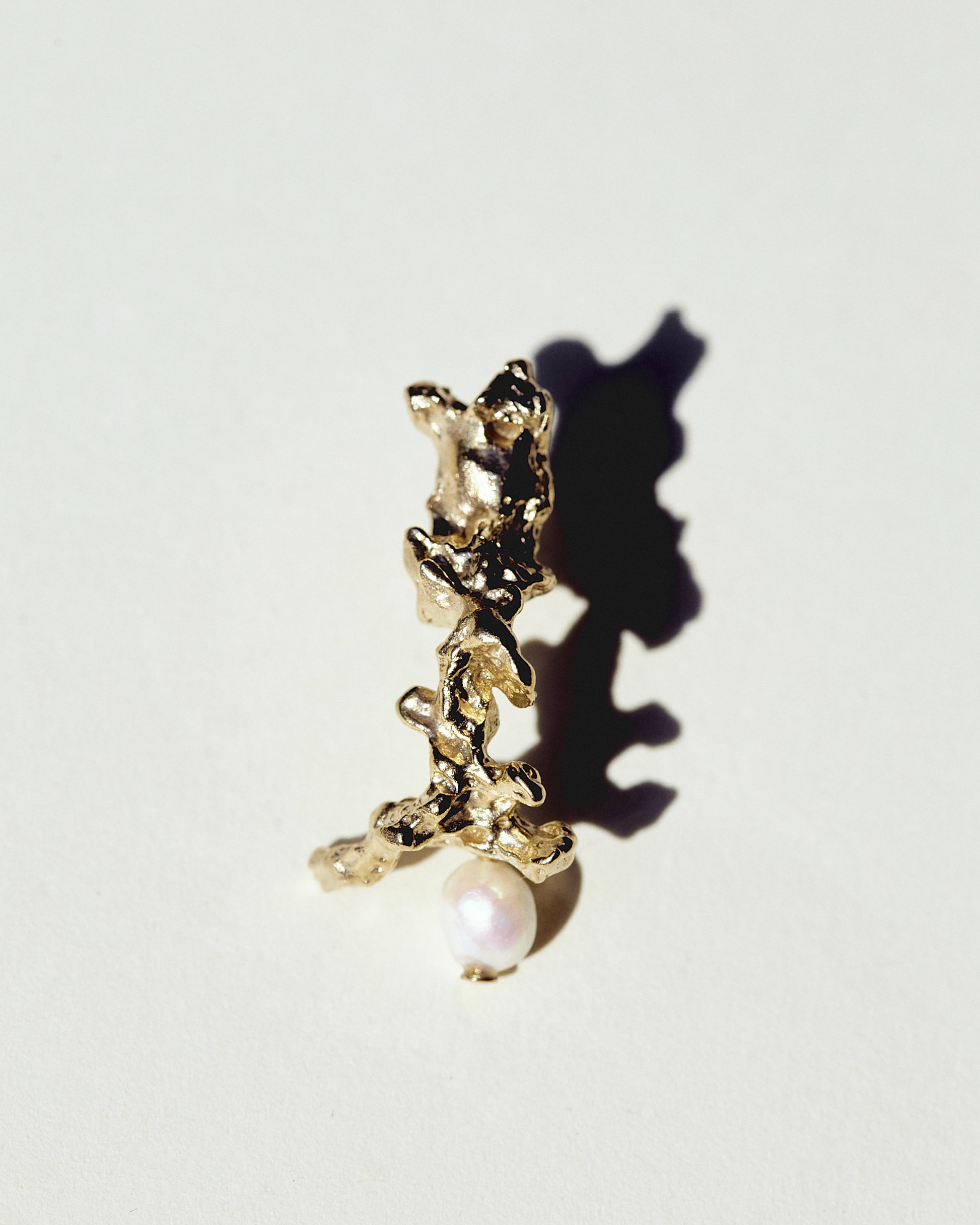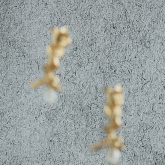 The Carmen earrings are a sculptural fragment, adorned with a freshwater pearl. Handcrafted from gold plated brass in France. Each pearl is natural and uniquely shaped. Your piece may therefore differ slightly from the one shown in the photos.