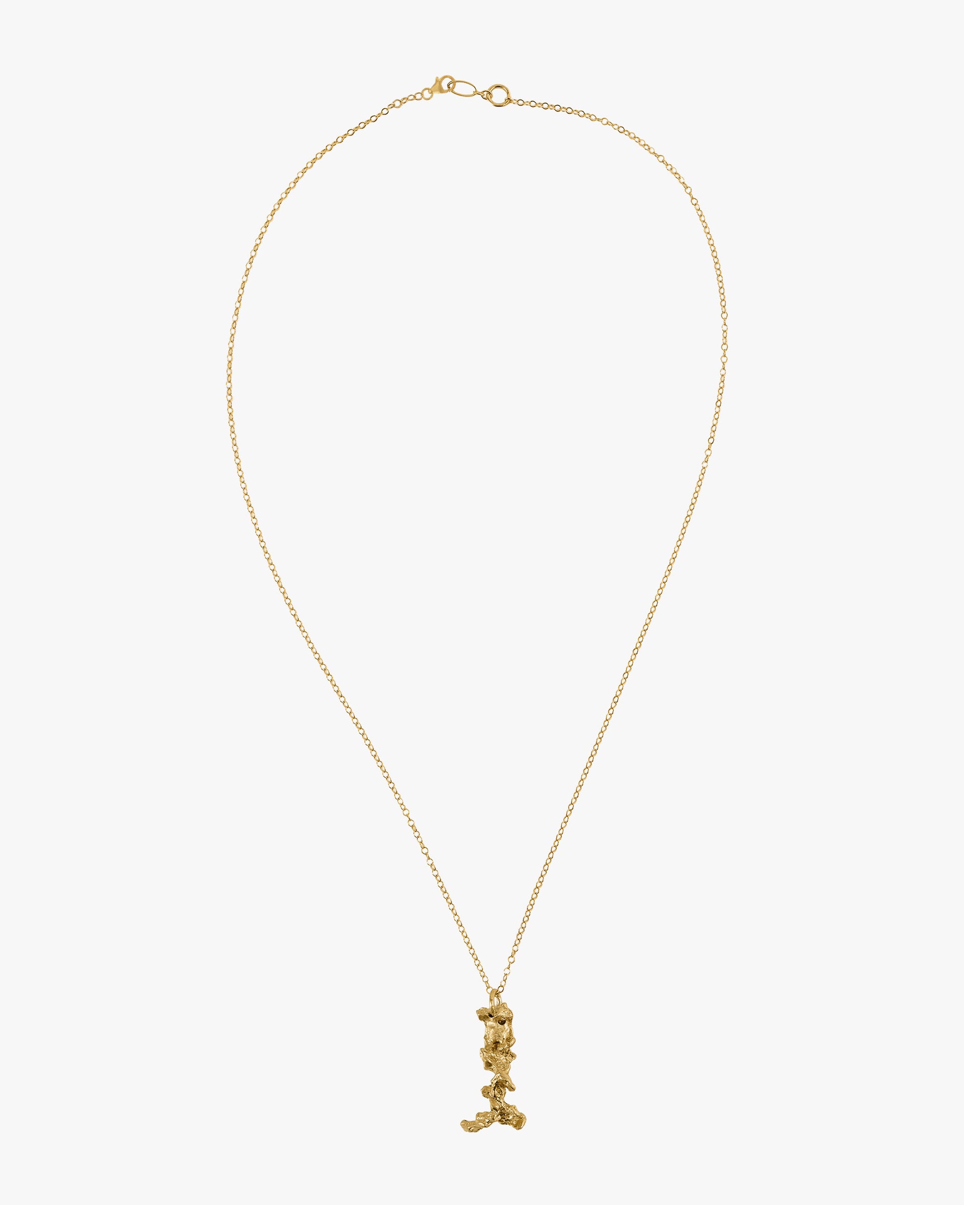 Each pendant is cast from these fragments and transformed into a precious piece, plated with gold and suspended on a delicate gold filled chain.