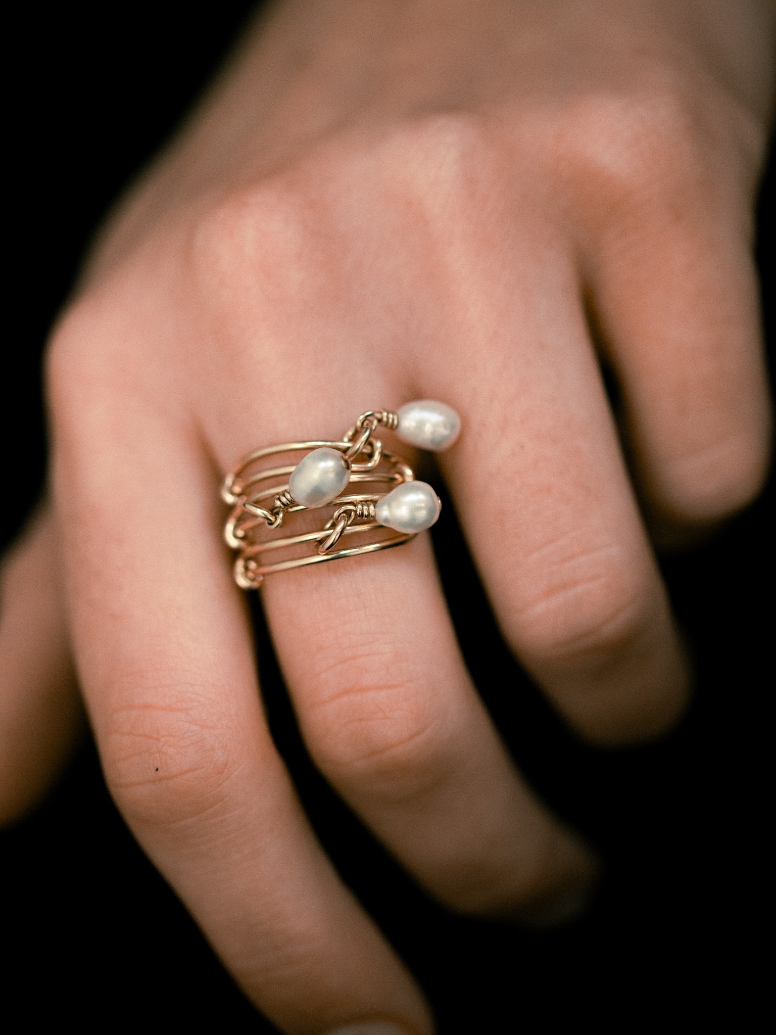 The Diane ring is carefully handcrafted in our workshop. It is made of gold filled wire and adorned with a carefully selected freshwater pearl. The Diane ring is designed to perfectly fit your finger by being adjustable. This feature makes it an ideal gift if you don't know the size of the person you're giving it to.