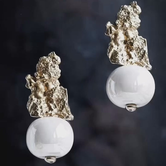 These statement earrings pair the sculptural relief of a fragment with the softness of a Greek ceramic pearl, resulting in a characterful piece that irresistibly draws the eye.