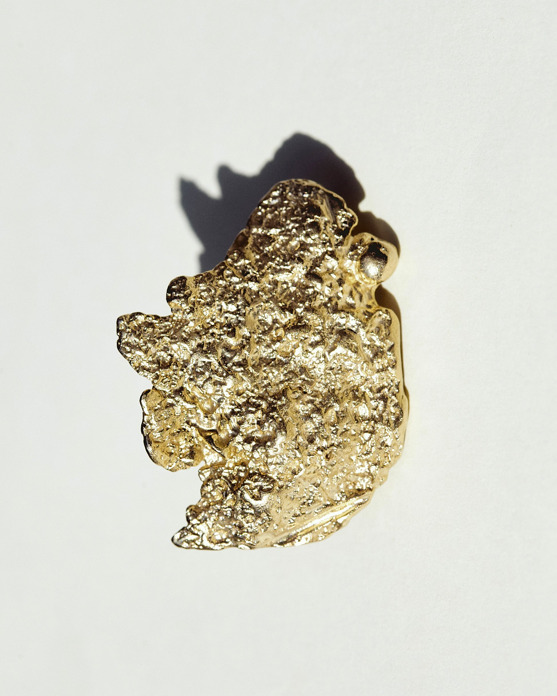 The Tamara earrings are a sculptural fragment, handcrafted from gold plated brass in France. Identical in their raw form, they are each worn in a different orientation, creating a subtle play of asymmetry that catches both light and the eye.