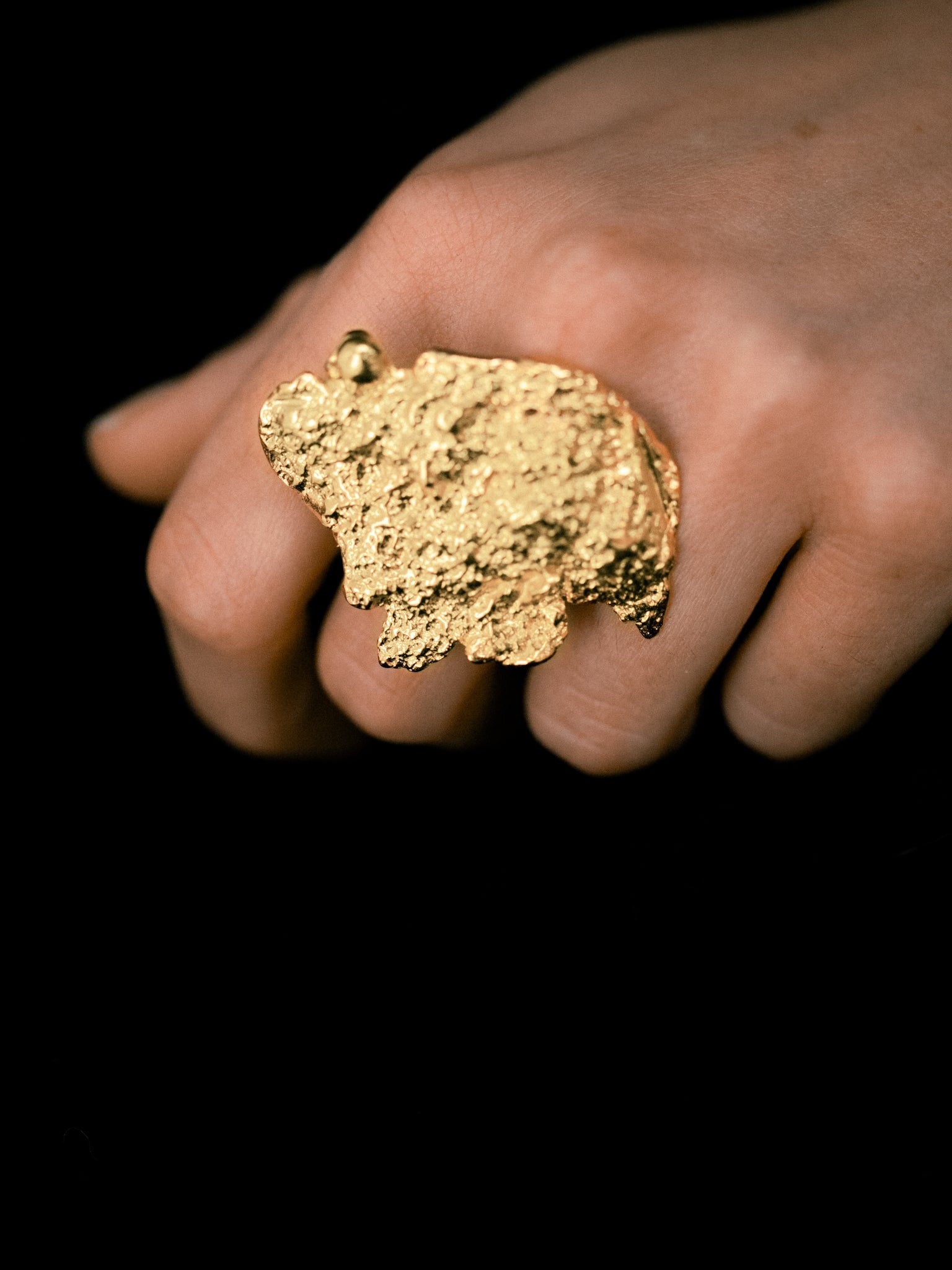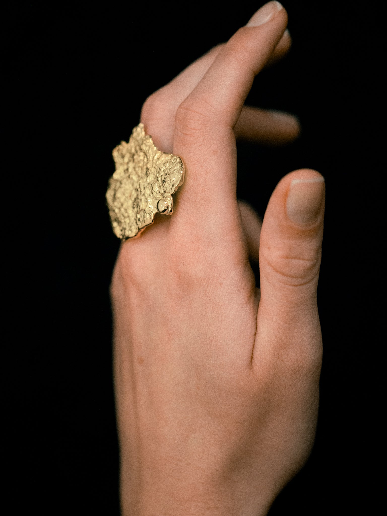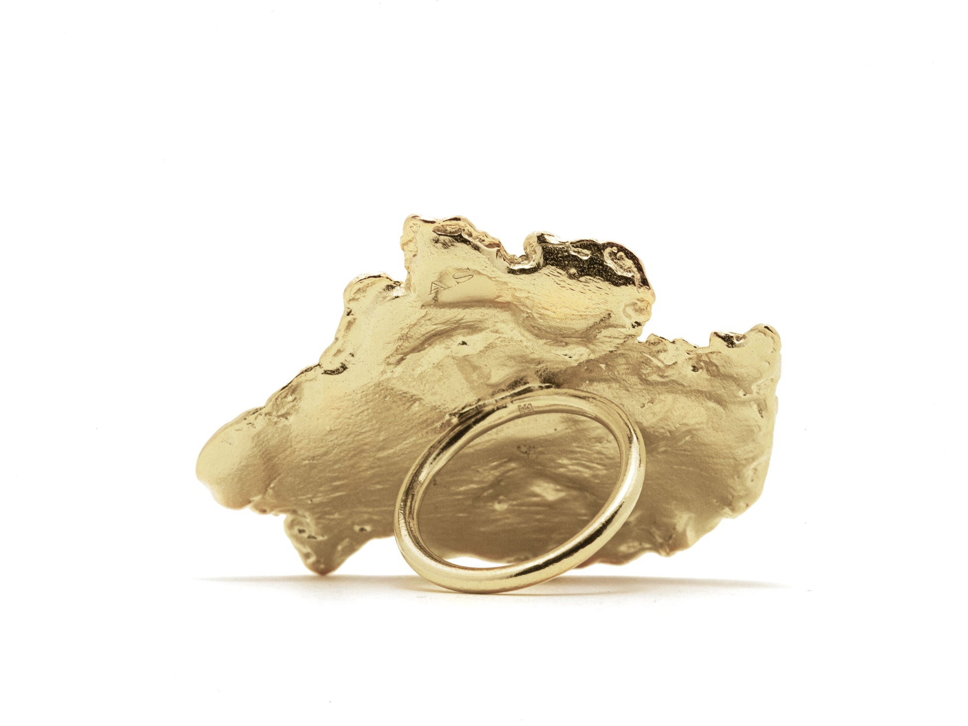 A sculptural fragment handcrafted from gold‑plated brass in France, embodying raw elegance and artisanal expertise.